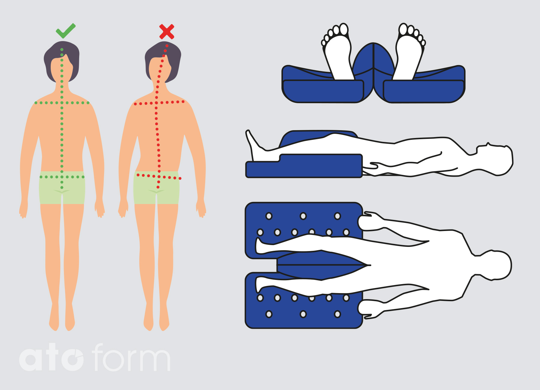 Die druckverteilenden Eigenschaften des Kissens verhindern weitestgehend ein Wundliegen. Das Kissen hilft bei der Positionierung des Benutzers nach der “Halv-Charlie”-Lagerungsmethode, die dafür sorgt, dass sich Hüft- und Kniegelenke in einer Ruheposition befinden. Wenn die Flügel des Kissens nach innen geklappt werden, kann die Ferse frei gelagert werden.