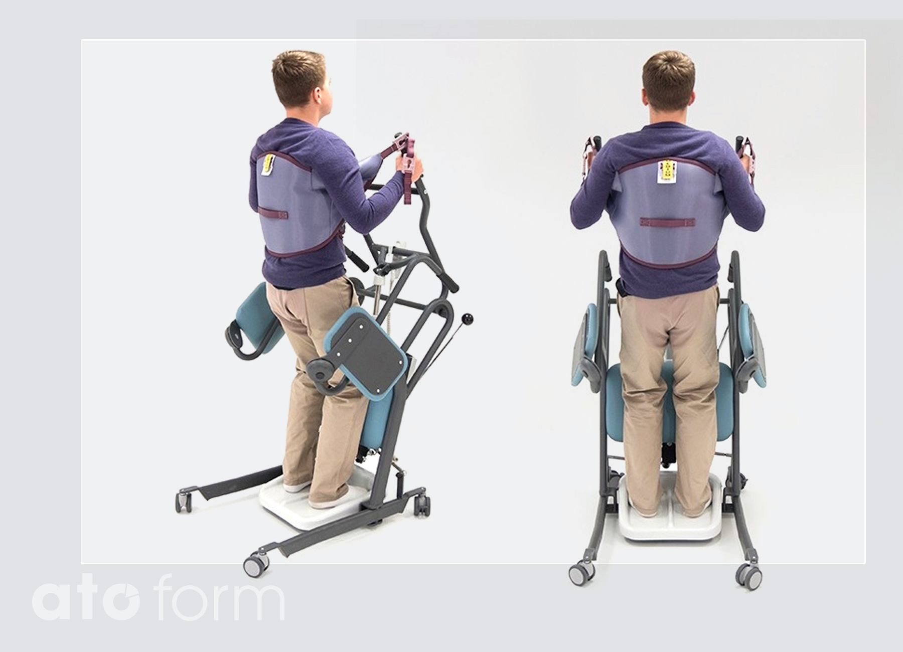 Der Mover ermöglicht schnellen, stabilen und sicheren Transport des Patienten vom Bett auf einen Stuhl oder Toilette und umgekehrt. Mit Hilfe von Feststellbremsen an den Hinterrädern wird der Mover fixiert.